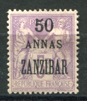 Fr PO's in ZANZIBAR SG.38 1896 50A on 5fr mauve (Fine unused) Cat.£85
