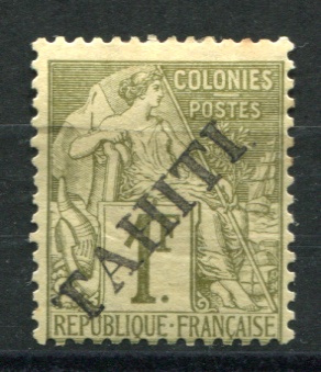 TAHITI SG.18 1893 1fr olive-gn (Fresh M) EOR One perf at top toned. Cat.£110