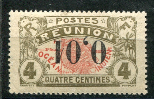 REUNION SG.91a 1917 0,01 on 4c red & olive SURCHARGE INVERTED (Fresh M) Cat.£110