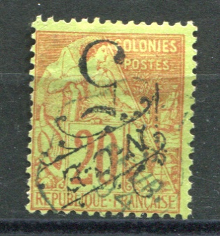 NEW CALEDONIA SG.45a 1892 5 on 20c red/green (Fine CDS) EOR Cat.£130 SCARCE