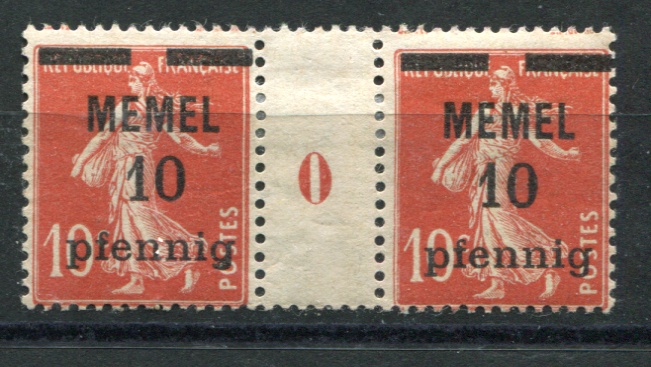 MEMEL SG.2 1920 10pf on 10c red in fine Mint MILLESIME pair Cat.Dallay £13