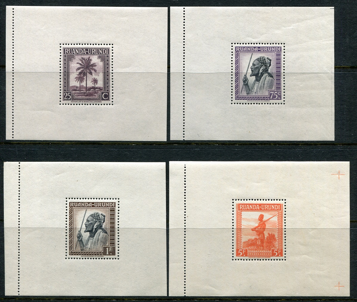 RUANDA-URUNDI: The RARE set of 1944 Miniature Sheets (Superb UM). Very sought after and
