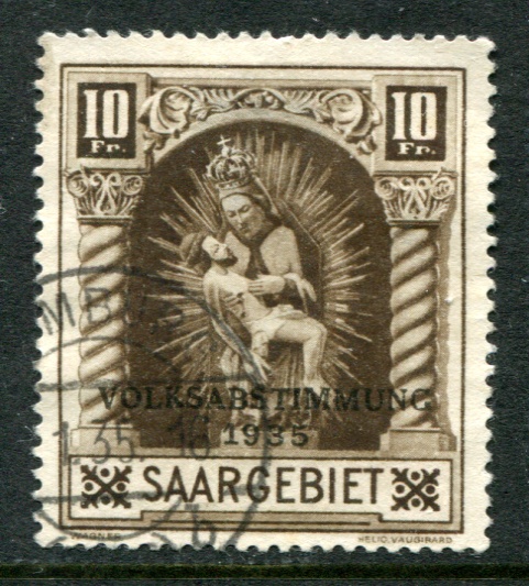 SAAR SG.191 1934 10f brown Madonna (Fine CDS) Thin at reverse where hinged. Cat.£95
