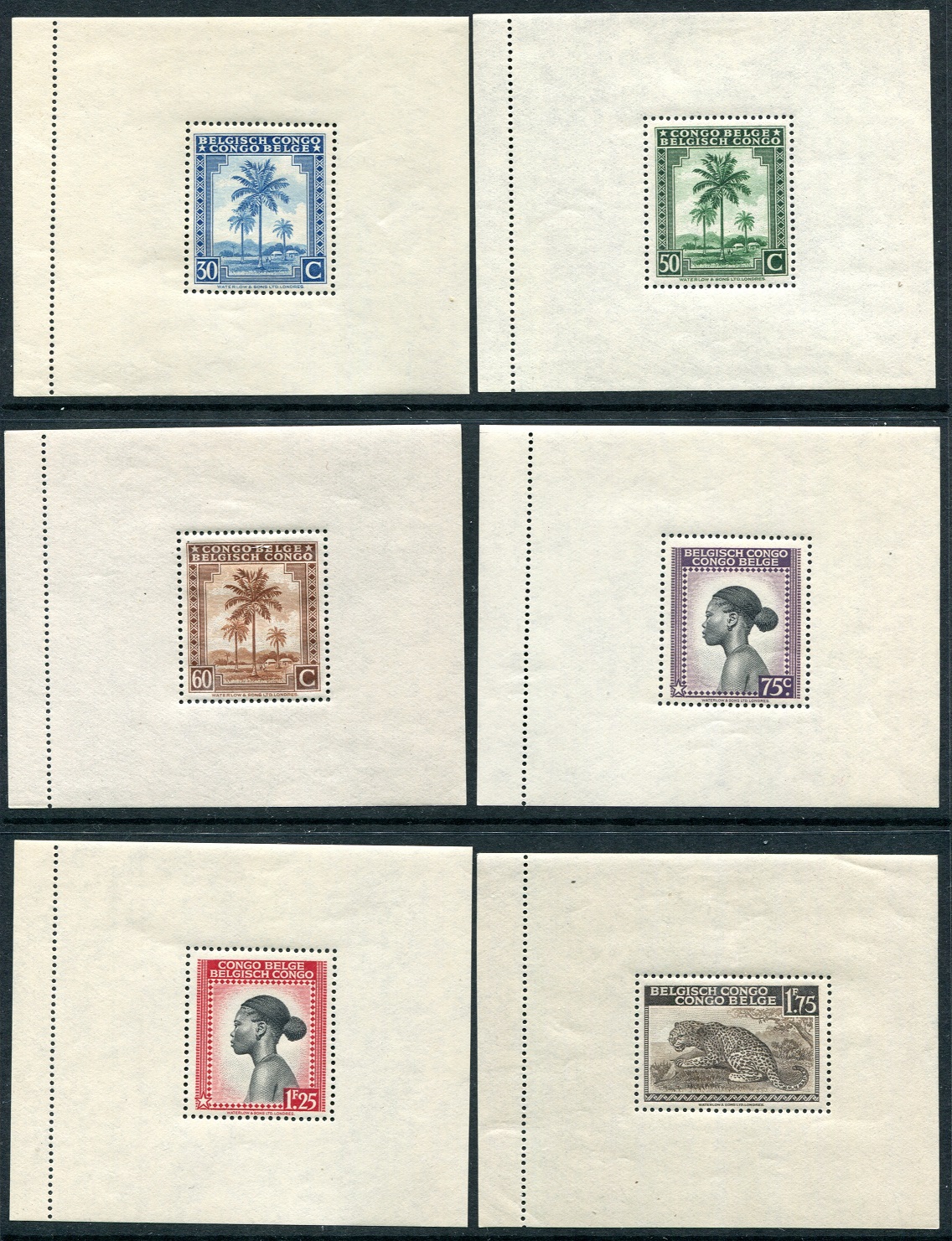 BELGIAN CONGO: The SCARCE 1944 Miniature Sheets each superb UM. Part set of 7 all different
