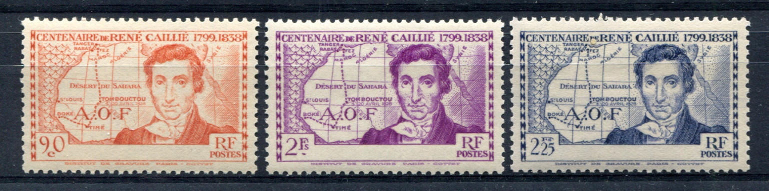 IVORY COAST SG.163a, 164a, 165a The 1939 Caillie Set with "COTE D'IVOIRE" OMITTED (Superb UM)